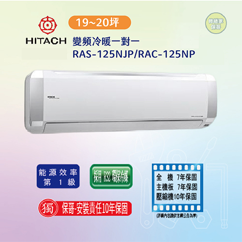 【日立-頂級型】變頻冷暖一對一RAS-125NJP/RAC-125NP(標準安裝)