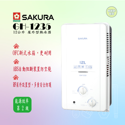 【櫻花】屋外傳統熱水器12L GH1235(桶裝瓦斯/天然瓦斯)