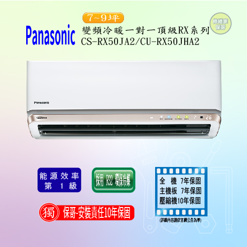 【國際-頂級RX】變頻冷暖一對一 CS(U)-RX50FA2(FHA2)(標準安裝) 停產剩庫存