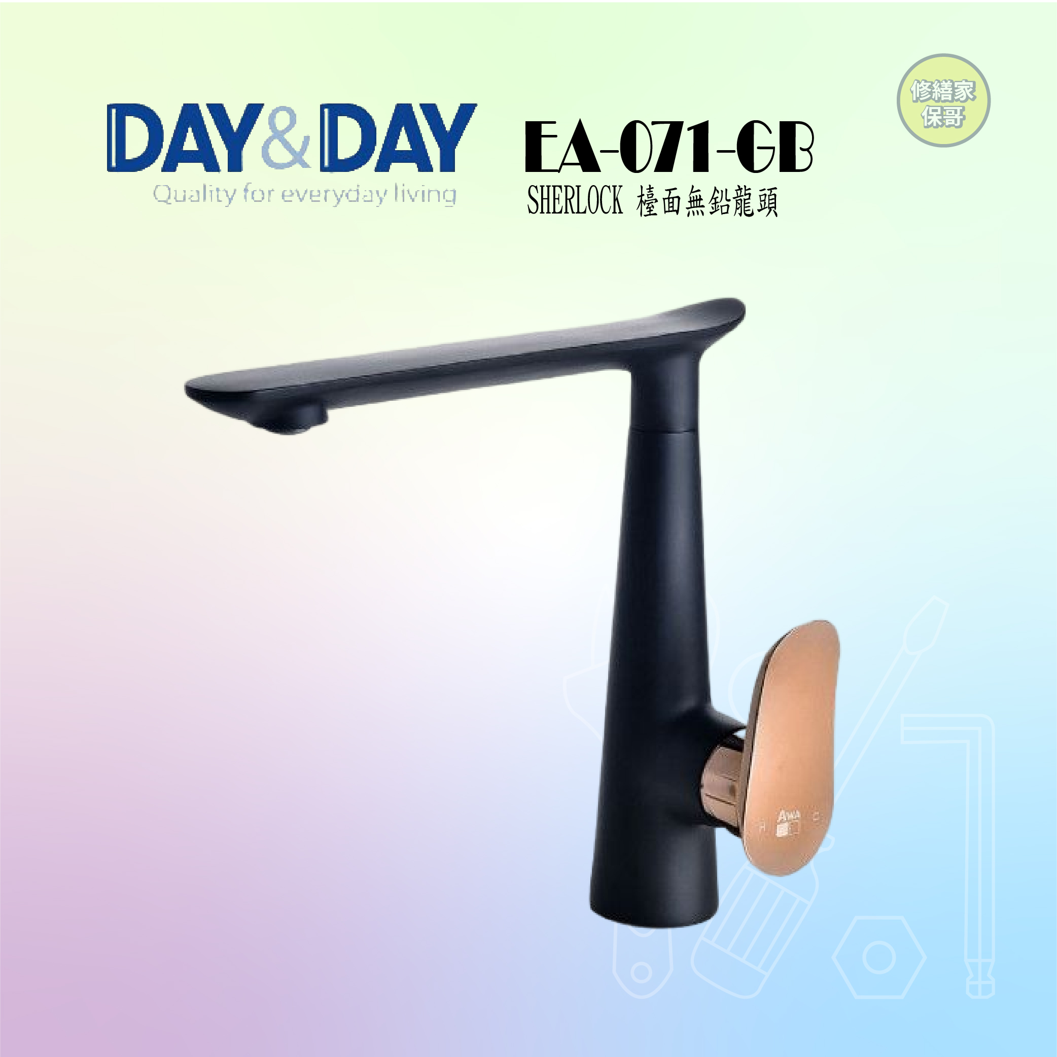 【DAY&DAY】SHERLOCK檯面無鉛龍頭-黑X玫瑰金 EA-071-GB