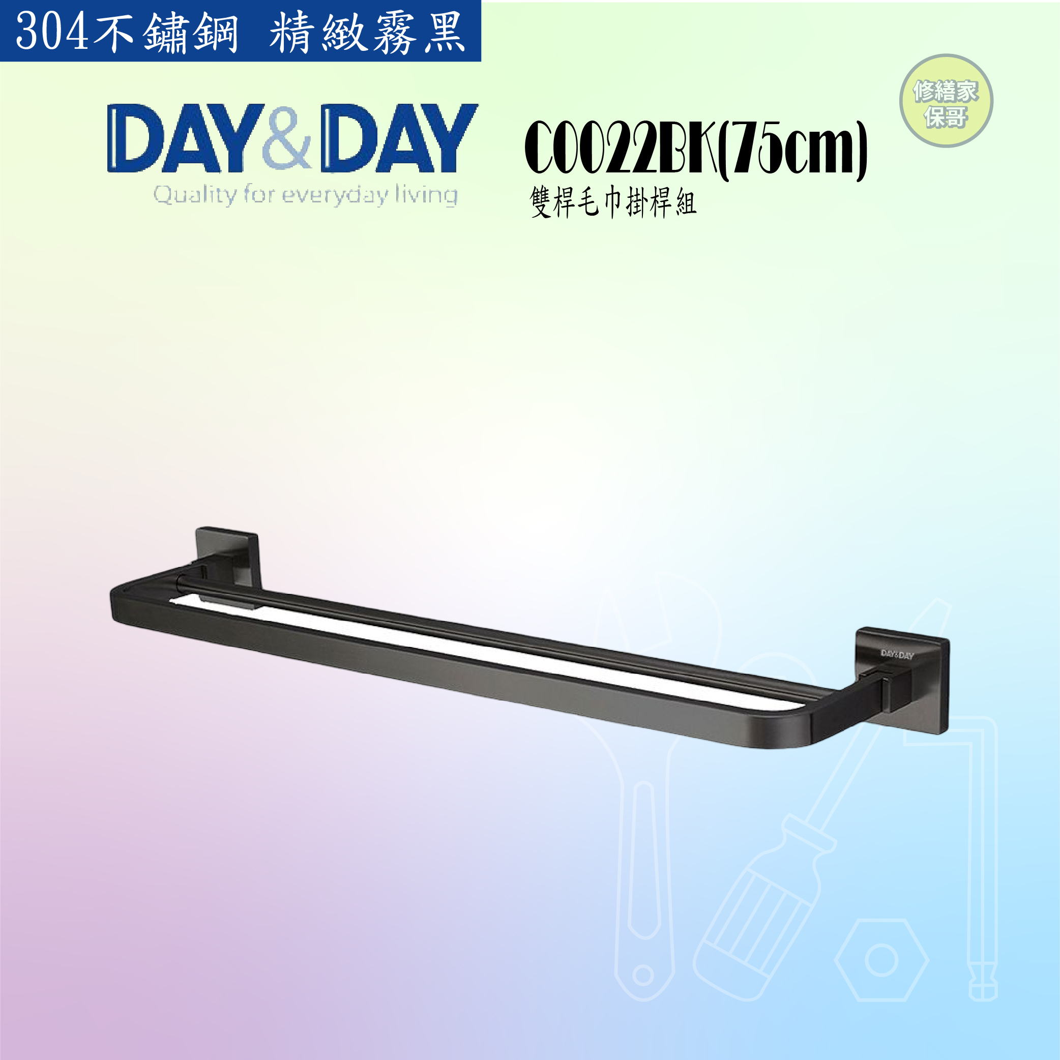 【DAY&DAY】304不鏽鋼 黑色雙桿毛巾掛桿組 C0022BK-75
